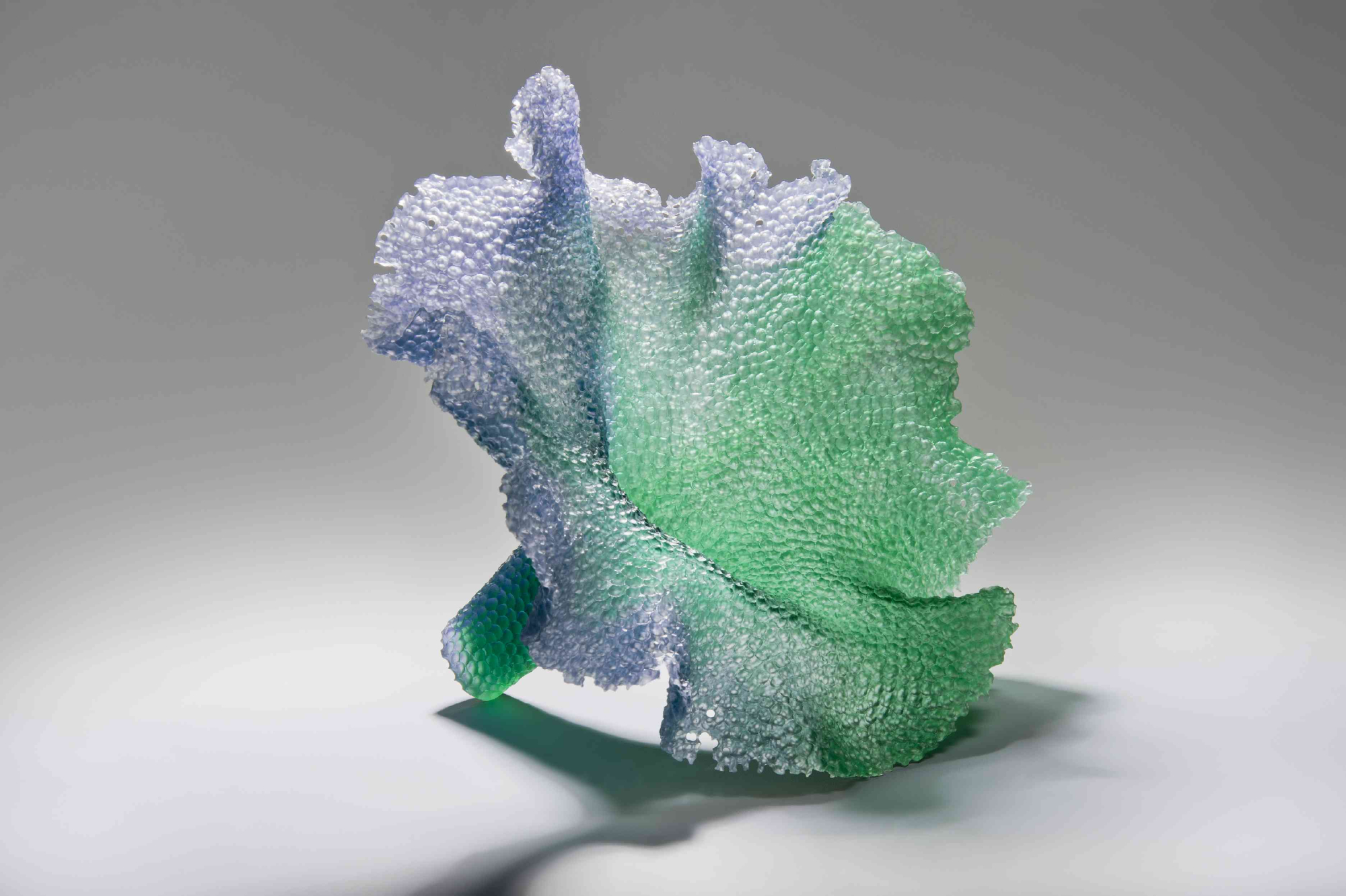 “My current work is influenced by the underlying structures of corals, their shape, growth, and movement in the sea. In my sculptural pieces, I explore the mathematics of the coral shape, known as a hyperbolic plane, I create shapes that grow into their own during the process. I add layers of complexity through the making process by refining and altering the piece like the forces of nature alters the perfect model in the natural world” – Monette Larson