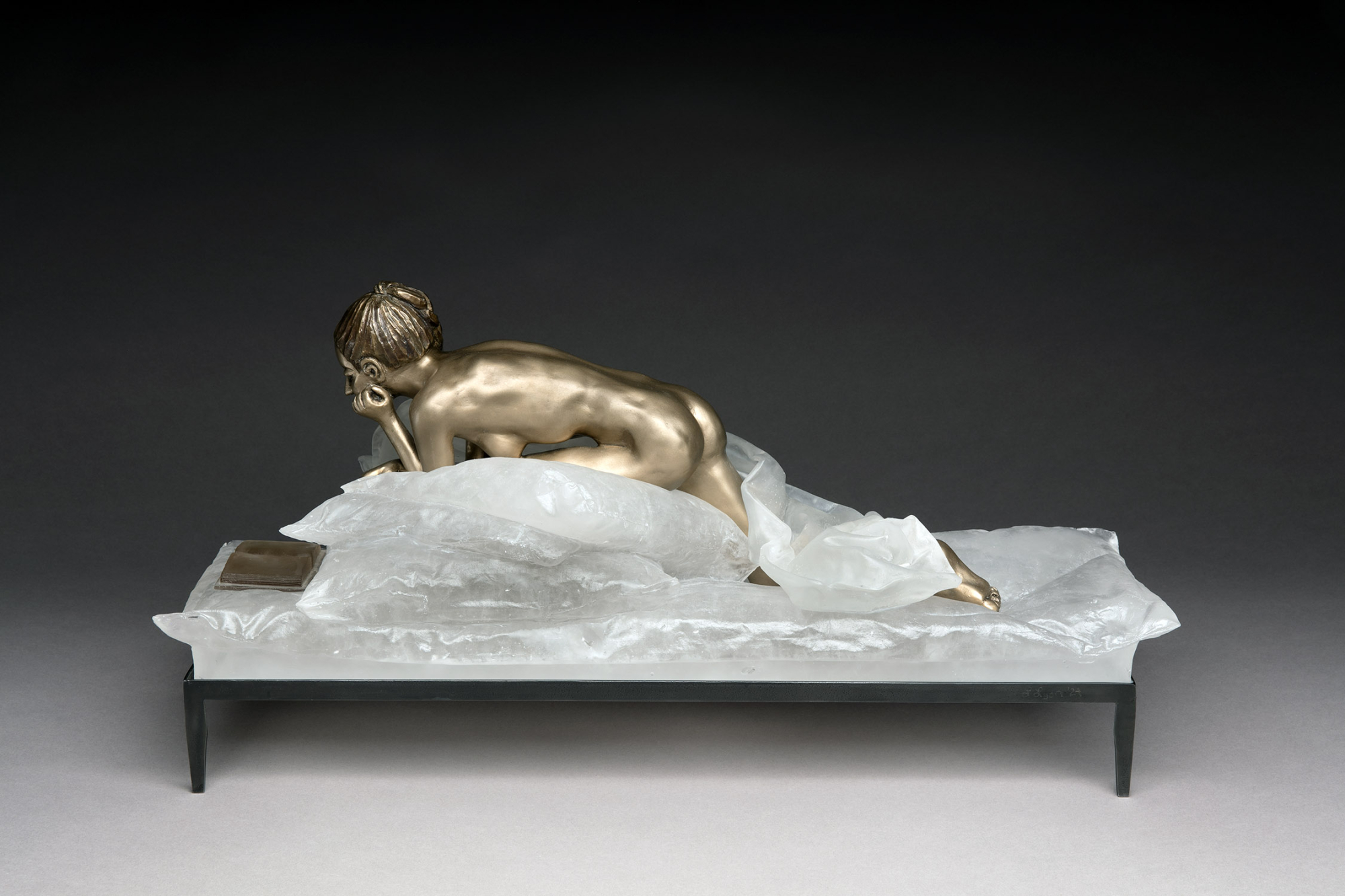 I started working in glass simply because it is a very seductive material. I have chosen to focus on sculpting figures. What interests me most is trying to convey the intellectual and emotional state of the individuals in my pieces, relying on subtle gestures, a turn of the head or twist of the hips, to express the figure’s state of mind. For a long time I was paring down the environment of the figures to simple geometric forms. Most recently I am working on softening those forms yet keeping them simple and obvious. Refining the figure has absorbed much of my time. Throughout the years, I have tackled the technical challenges of increasingly larger work. The increased scale allows for more nuance of expression in each sculpture.